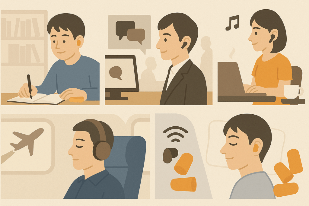- 長時間の快適性重視 → 自分に合う素材・形状の耳栓、または軽量なノイキャン